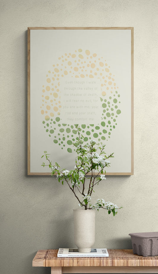 Plakat, salme 23:4, grøn/pudder
