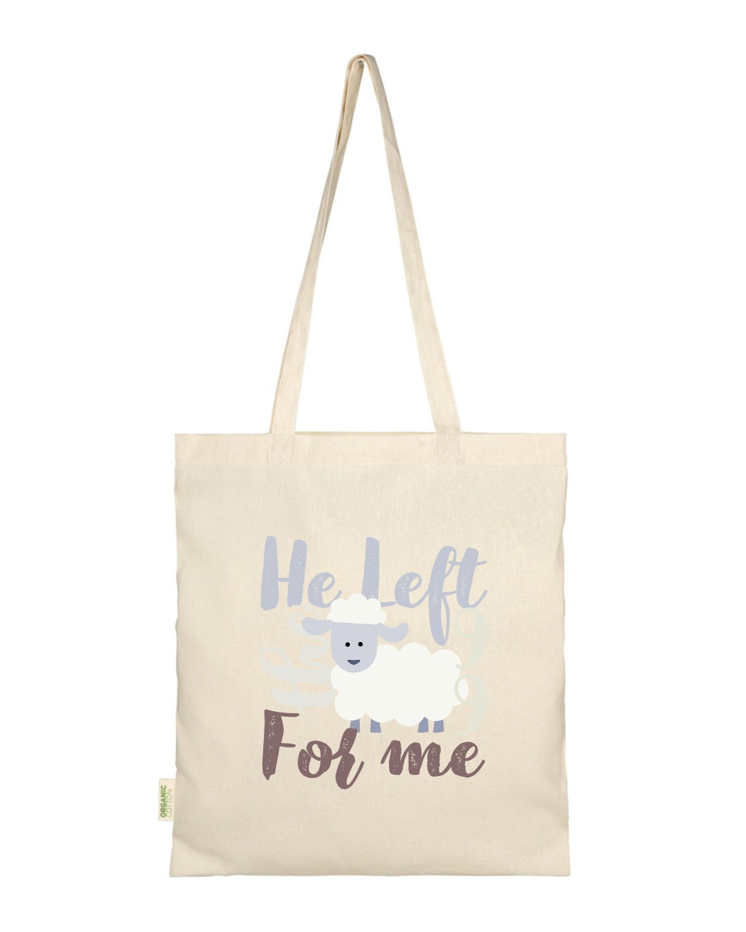 Naturfarvet bomuldsmulepose med Tekst 'He left the 99 for me'.