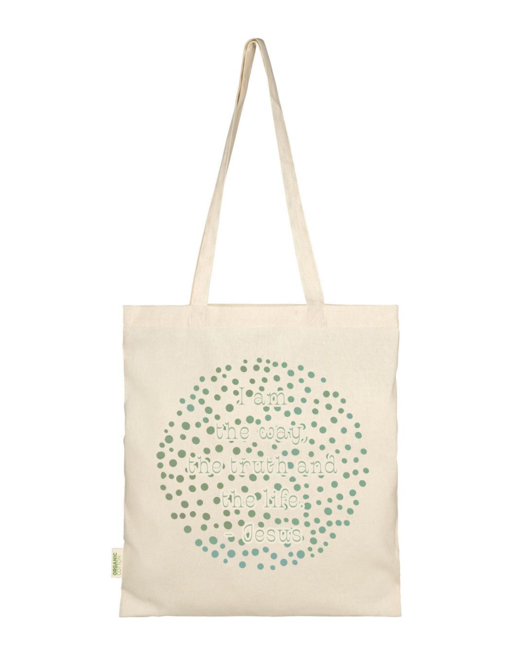 Naturfarvet bomuldsmulepose med bibelvers; John 14:6.