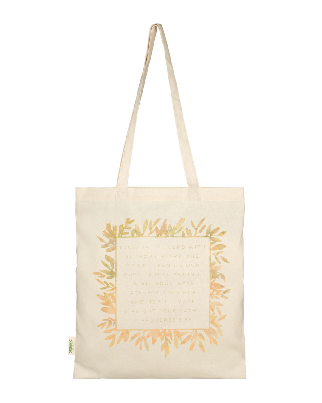 Naturfarvet bomuldsmulepose med bibelvers; Ordsprogenes bog 3:56