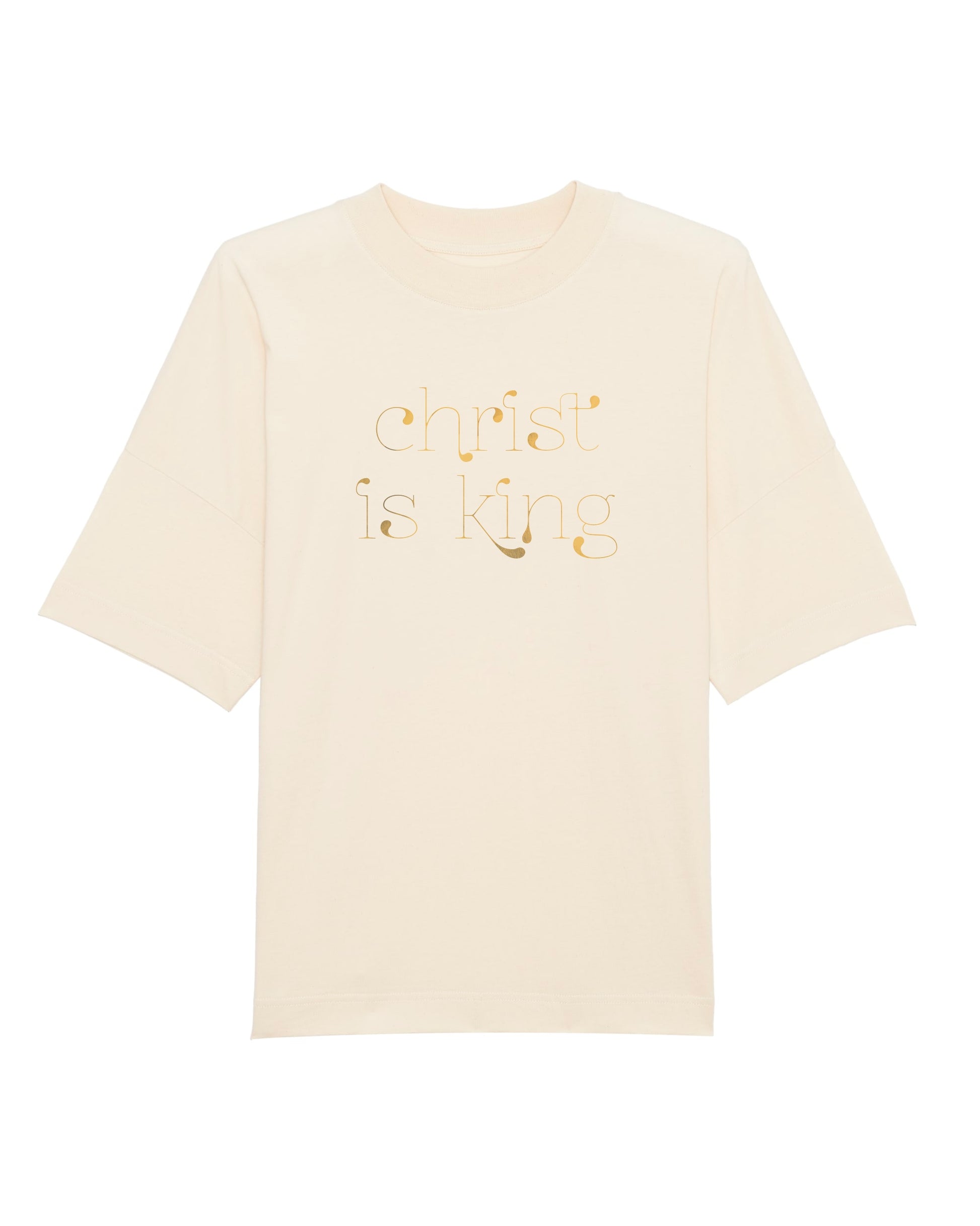Oversize cremefarvet T-shirt i økologisk bomuld, med teksten: 'Christ is king'.